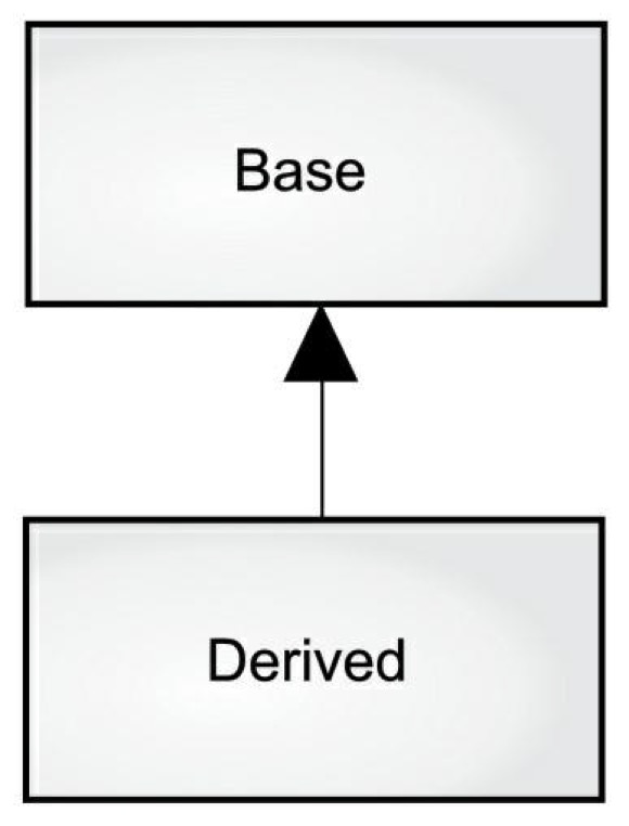 The arrow in this diagram points from the derived class to the base class. As you will see, there is commonly more than one derived class.